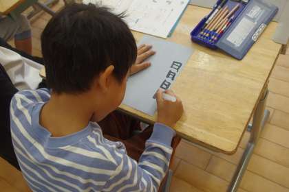 書写の授業の後半には、水筆を使って漢字の練習に取り組みました。