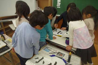 2年生は硬筆、3年生は習字に取り組んでいます。静かな中で、落ち着いて書いています。