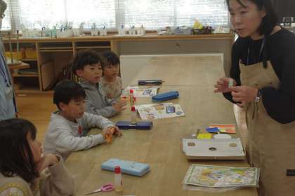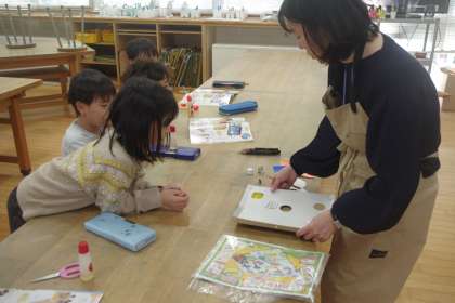自分で考えたお話が、ゲームの進行とともに進んでいくおもちゃを作ります。