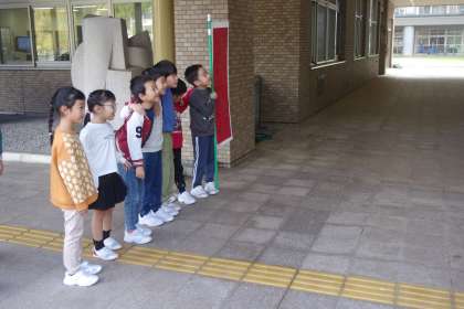 今日の担当は、1年生。玄関前に、元気な挨拶の声が響いていました。