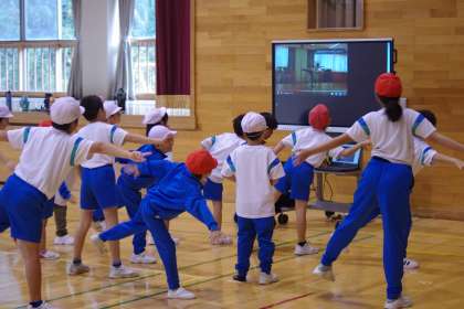 今日の朝の時間はチャレンジタイム。全校のみんなで体を動かしました。ダンス、マット運動、ボール投げ等、いろいろな運動に取り組んでいます。