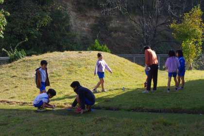鏡を使って、日陰の場所に光を届けようとしています。鏡から鏡へ、光のバトンパス。上手くつながるかな。