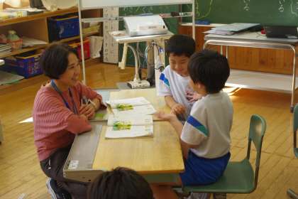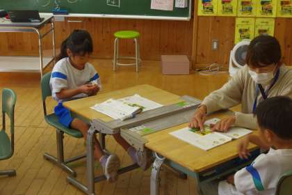 「おはなしのさくしゃになろう」に取り組む子供たち。どんなお話ができるかな。