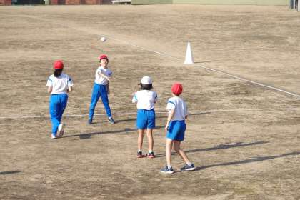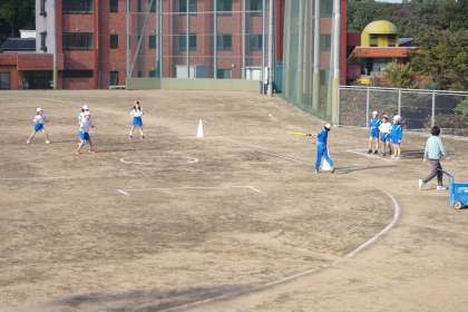 今日は外でティーアップベースボールに取り組んでいます。
