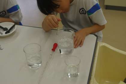 今日はミョウバンを溶かしました。食塩とは溶け方が同じだったでしょうか。