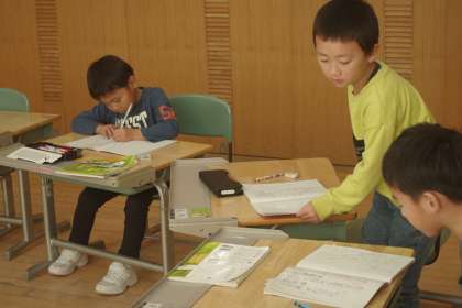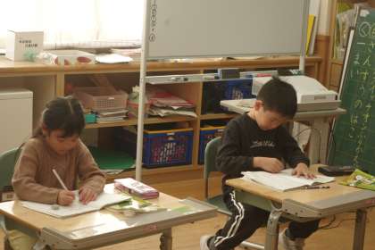 漢字テストに取り組んでいました。間違えた漢字があれば、しっかりと確かめて、もう一度練習しています。