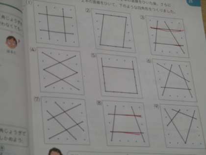 いろいろな四角形の特徴や仲間分けについて、平行な直線に注目しながら考えました。