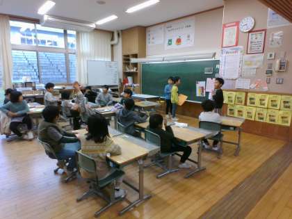 生活科「わくわくあきまつり」の準備が整いました。今朝は、各クラスに招待の案内を届けました。楽しんでもらえるといいですね。