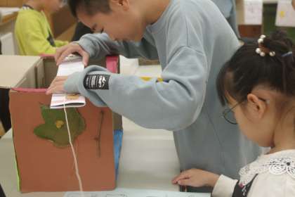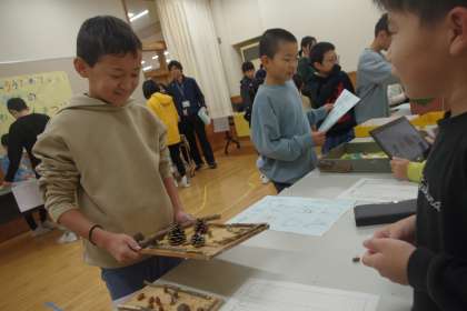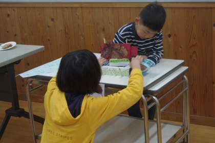 5,6年生が、いろいろなおもちゃで遊んでいます。なかなか難しいおもちゃもありましたが、1年生にコツを聞いて楽しんでいました。