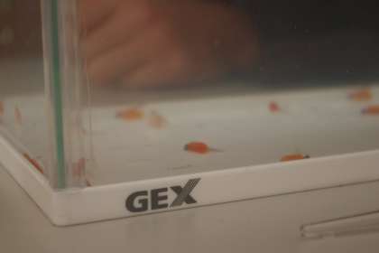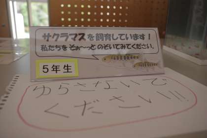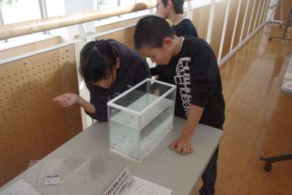 5年生の子供たちが、サクラマスの様子を観察しています。ずいぶん変化してきたかな。
