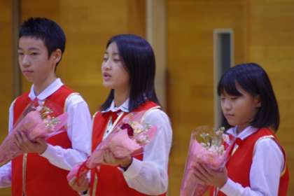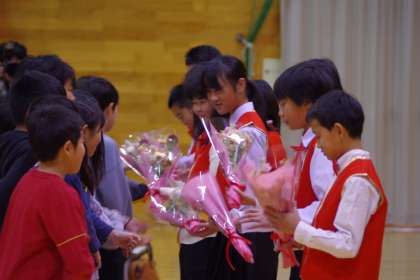 次は、引退セレモニーです。花束贈呈の後に、6年生一人一人が下級生へのメッセージを伝えました。