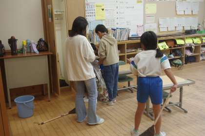 自分でできることを考えて取り組んでいます。上学年の姿が、よい手本となっています。
