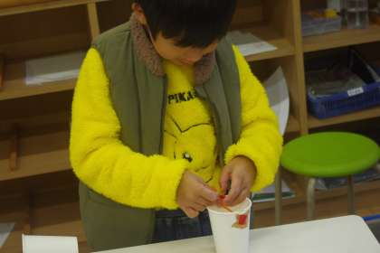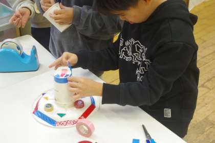 おもちゃ作りに取り組んでいます。昨日の振り返りを今日の活動につなげています。