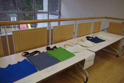 6年生の子供たちが作っていたトートバッグが完成しました。教室の前に展示してあります。