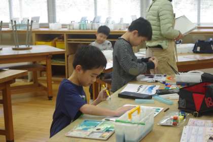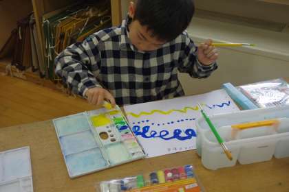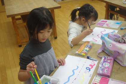 言葉からイメージした線を画いています。形や色等、それぞれが思い思いにイメージを膨らませています。