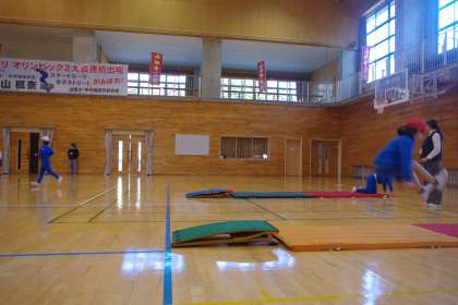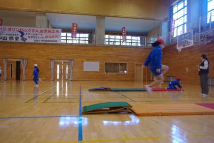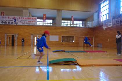 走り幅跳びに取り組んでいます。リズムよく、そして力強く踏み切ることができるように練習を重ねています。