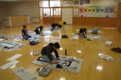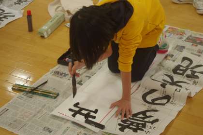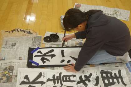 書き初めの練習に取り組んでいます。みんな集中して書いています。