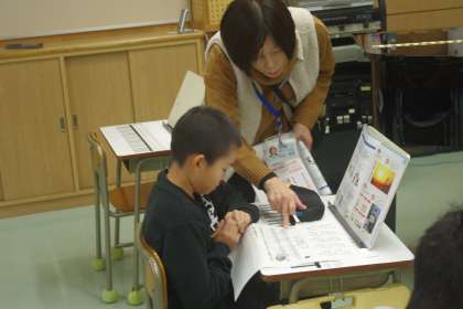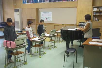 「待ちぼうけ」の歌詞に応じて歌い方を変えて歌っています。歌ってみて、いろいろなことを感じたり考えたりしたようです。