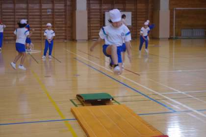 体の動きを意識することで、踏み切り方が変わってきました。しっかり踏み込んで高く跳ぶことで、距離も伸びています。