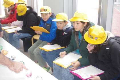 富山市ガラス工房で卒業記念製作に取り組みました。はじめに形や色を決めますが、たくさんの種類があって迷います。