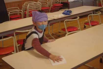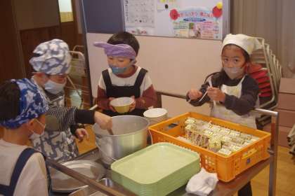 準備のときに、1年生の子供たちが自分のできることを探して取り組んでいました。よく頑張っています。