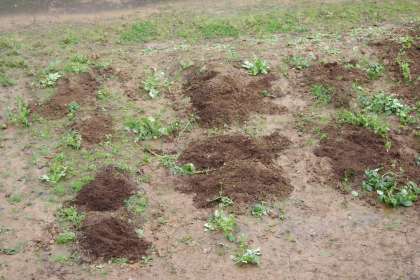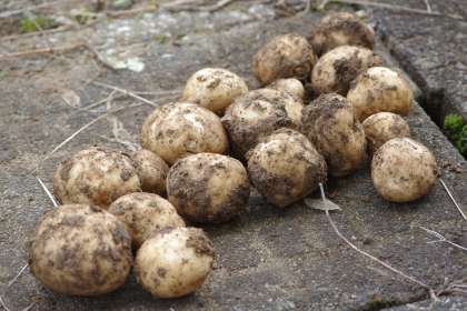 畑を掘り返しました。大きなジャガイモが収穫できたね。