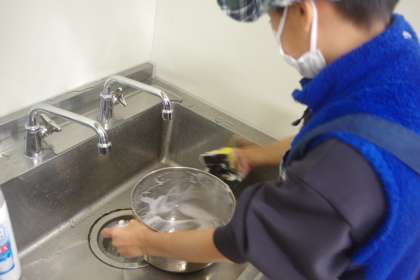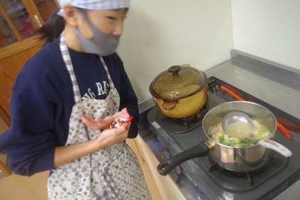 調理が進んでいます。調理しながら、使わないものは片付けるなど、手際のよさも見られます。