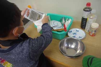 3品ともできあがって、おいしく食べました。最後は片付けです。