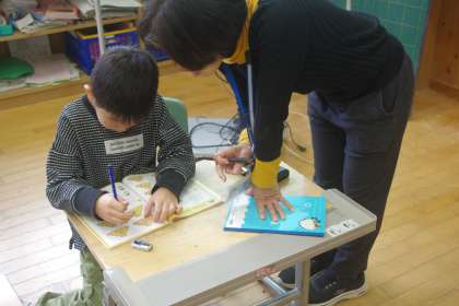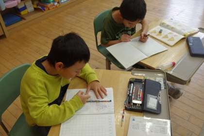 今日は計算ピラミッドに取り組んでいました。教科書の問題を全部解いた子供は、自分で問題を作って楽しんでいます。教科書のピラミッドよりも、ずいぶん大きなピラミッドができていました。