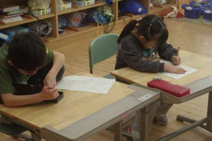 「手がみでつたえよう」の学習に取り組んでいます。手紙を送りたい相手を決めて、自分の気持ちを伝えます。子供たちは、自分の書いた手紙を読んでもらうことを楽しみにしているようです