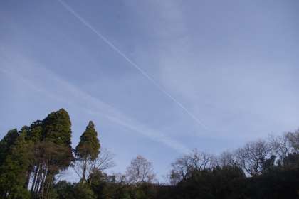 昨日とは打って変わって、気持ちのよい青空が広がっています。学校の上に、飛行機雲が見えました。