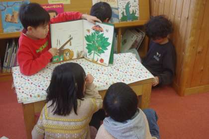 図書館をのぞくと、2年生の子供たちが読み聞かせをしていました。
