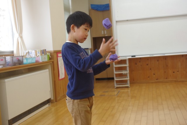 今日も、昔のあそびに取り組んでいます。竹とんぼ、お手玉、だるま落とし、おはじき。子供たちはどんどん上手になっていきます。