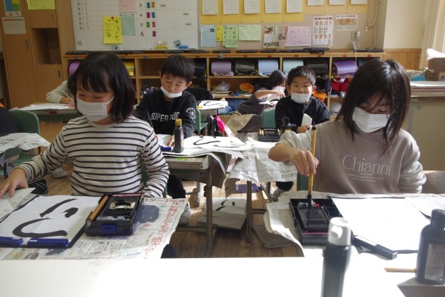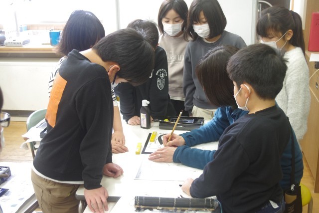 先生のお手本をしっかりと見ています。集中して取り組んでいました。