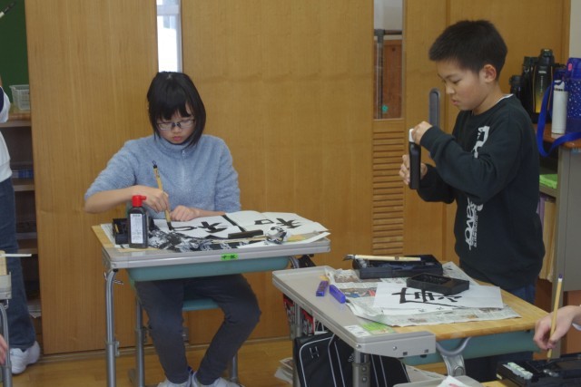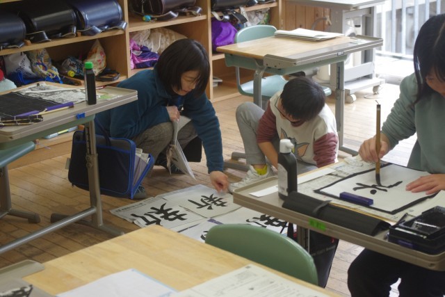 納得のいく一枚を書き上げようと集中して取り組んでいます。