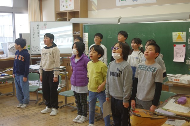 学習参観の際に披露する歌の練習に取り組んでいます。当日の姿を楽しみにしていてください。