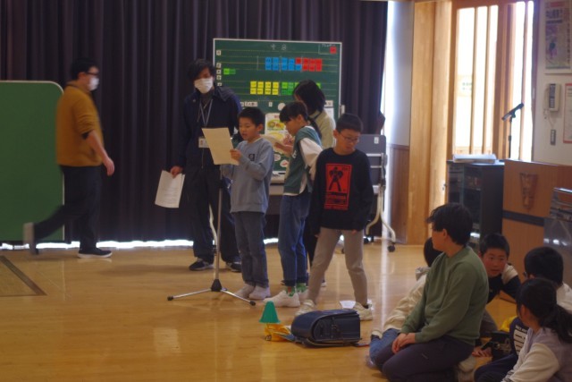 来週行われる卒業を祝う会に向けてリハーサルを行いました。5年生が中心となって下級生をまとめて進めています。