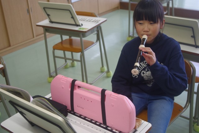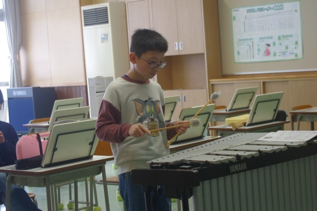 一人一人が別の楽器を担当して「威風堂々」の合奏に取り組みます。しっかり演奏できるよう、練習しています。