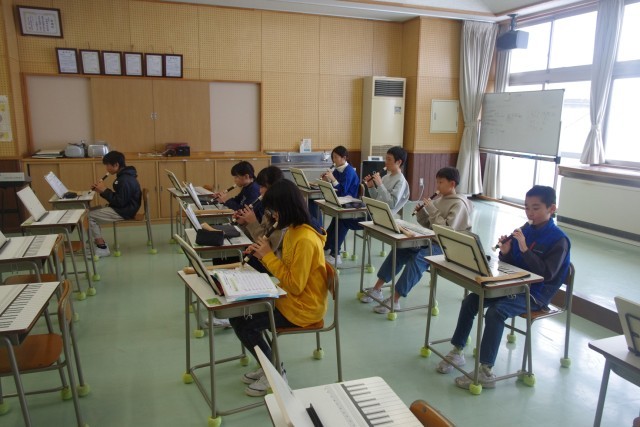 メヌエットをリコーダで演奏していました。この後は、パートごとに分かれて練習するようです。