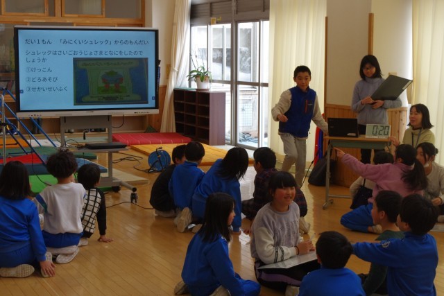 今日は、図書・環境委員会主催の読書クイズを行いました。スマイル班のみんなで協力して取り組んでいます。