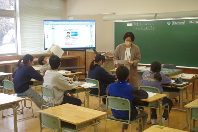 卒業まで、あと少しになってきました。ALTの先生との学習は残りわずかです。今日は、卒業に向けてのメッセージに取り組んでいます。