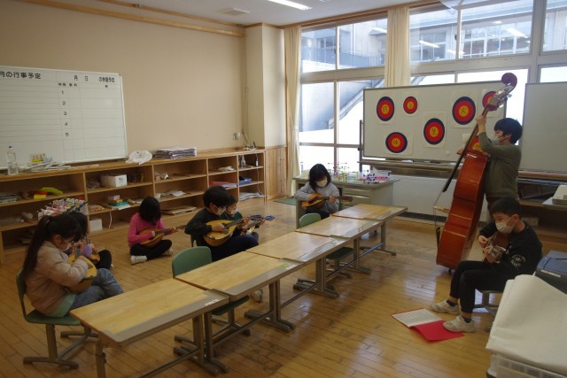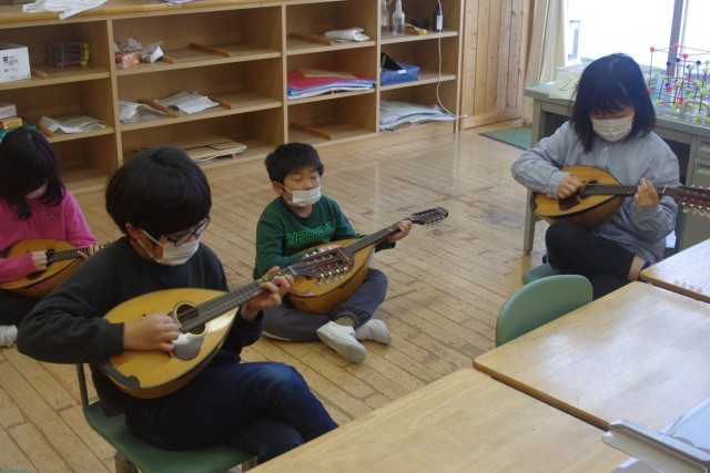 3年生の子供たちが、卒業式の入場曲の練習に取り組んでいました。3年生だけの演奏ですが、とても見事な演奏でした。これまで、マンドリン活動の時間だけでなく、朝の時間や休み時間、家に持ち帰っての練習等、地道な取り組みが成果となってあらわれています。