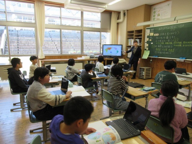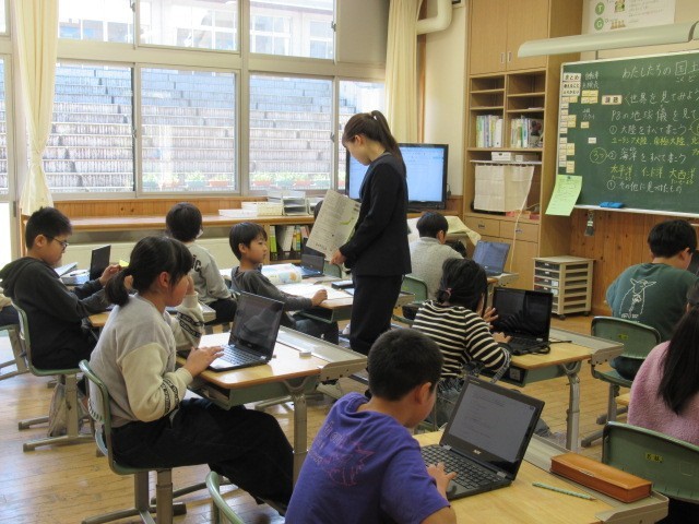 社会科の学習で、緯度と経度について、地球上の位置を示す便利なものであること、「よこいけいた」で「よこ=緯度、経度=たて」で覚えるとよいこと等を知りました。