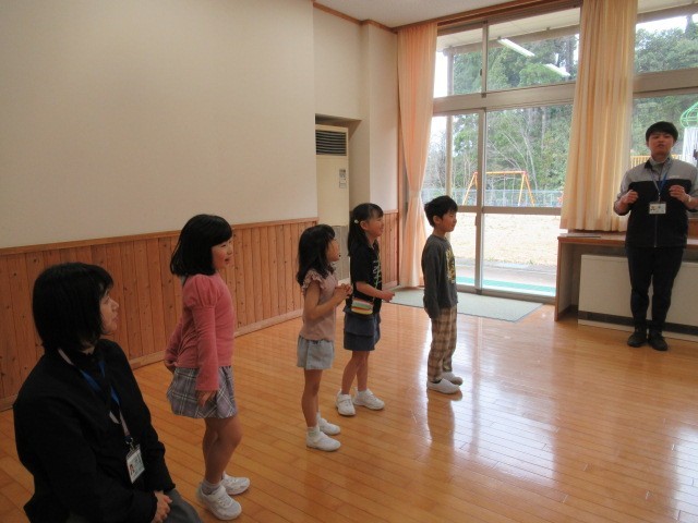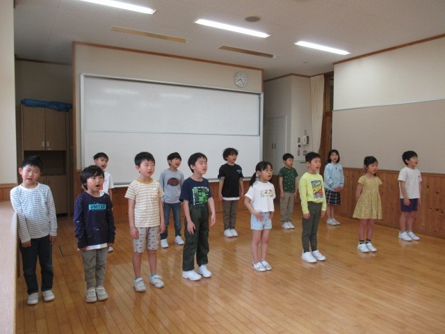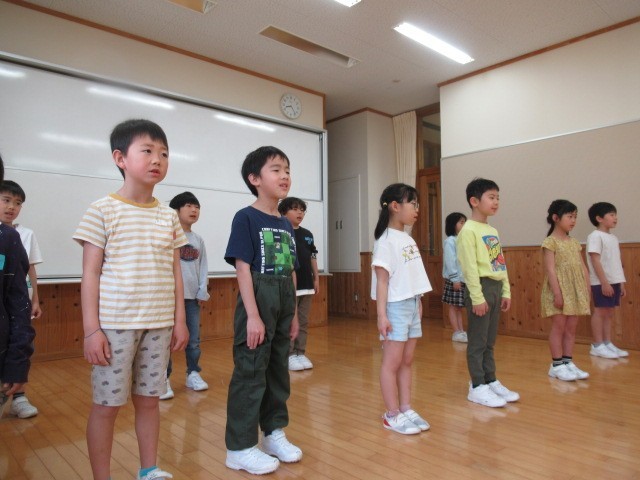 朝の時間、2・3年生のみんなは、1年生に校歌を歌って聴かせてくれました。真島先生の「梅干しを食べたときみたいな口をすぼめたすっぱい顔」から「目をぱっちり開けて口角をあげた顔」への練習や複式呼吸の仕方を教わりました。聴いている1年生も一緒に表情のトレーニングや複式呼吸に挑戦!楽しく校歌に親しむことができました。