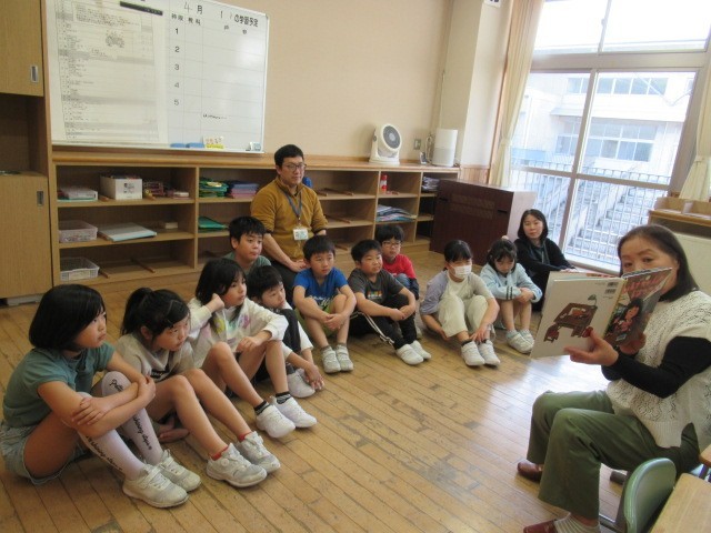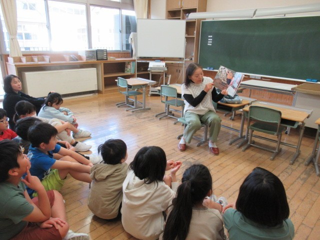 朝読書の時間、校内をまわっていると、読み聞かせをしてもらっている3・4年生の教室がありました。ちょっとのぞかせてもらいました。室井滋さんの絵本「しげちゃん」シリーズの一冊を読んでもらっていました。子供たちは、柴田先生の語り口に作品世界に引き込まれ、夢中になって聞いていました。私も結末が知りたくてつい長居してしまいました。胸がキュンとなる、あったかいお話でした。