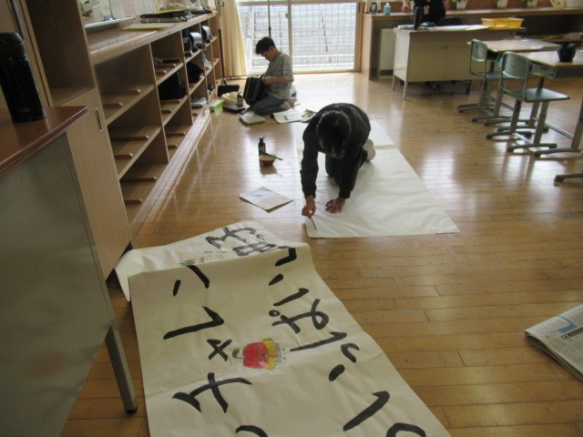 朝は児童会マスコットキャラクター拡大版づくり、午後からは児童会スローガン作成に精を出す働き者の6年生、頼もしい限りです。達筆でのびのびと書かれた文字が、山田っ子の心に沁みていくことでしょう。