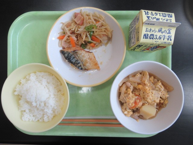 今日のメニューは、○さばのみそ煮、○野菜ソテー、○卵とじ、○ごはん、○牛乳でした。どれもおいしくいただきましたが、中でも、野菜ソテーは絶品です。切干し大根が入っているところもお気に入りです。子供たちにも食べやすいと思われます。みそ煮に、ソテーに、卵とじ。いずれもご飯がすすむ主菜・副菜でした。