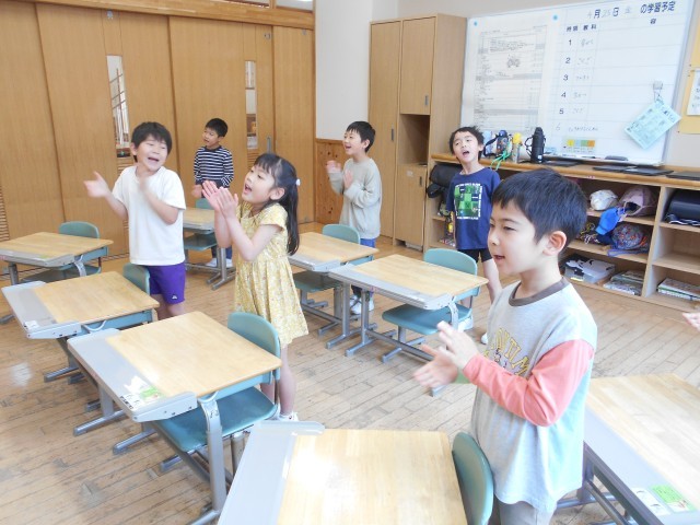 歌詞を覚えた後、手拍子をしながら大きな声で元気よく歌いました。