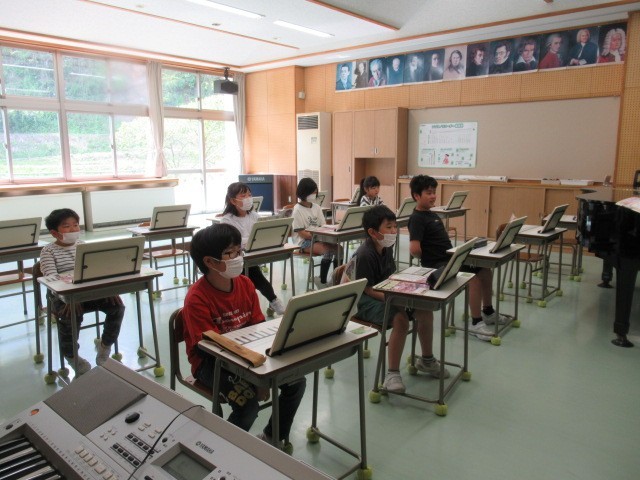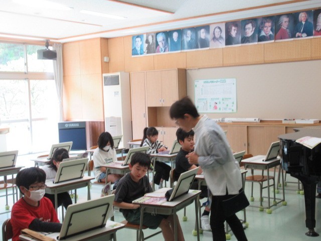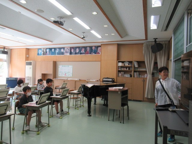 連休谷間の月曜日、4年生の1限目は音楽科でした。音楽室で、「さくら さくら」の歌い方について、ブレスの記号とその意味を確かめているところでした。息つぎがどのように歌唱に生かされているのか、歌声を聴ける機会が楽しみです。