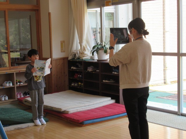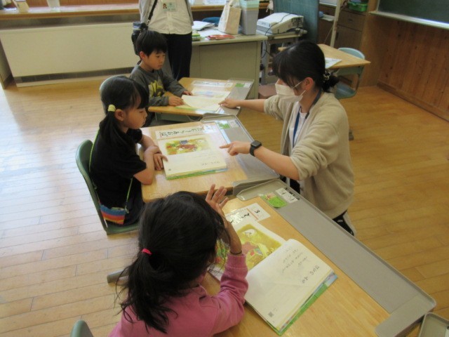 1年生の子供たちは、先生と一緒に楽しそうに文を読んでいました。「一個とばしだー」「丸があるよ」「次のページにも続いてる」等、気付いたことをつぶやきながら物語に親しみ、想像をふくらませていました。音読する様子をchromebookで撮影してもらっている姿も見かけました。振り返るのかな?頑張っていますね。